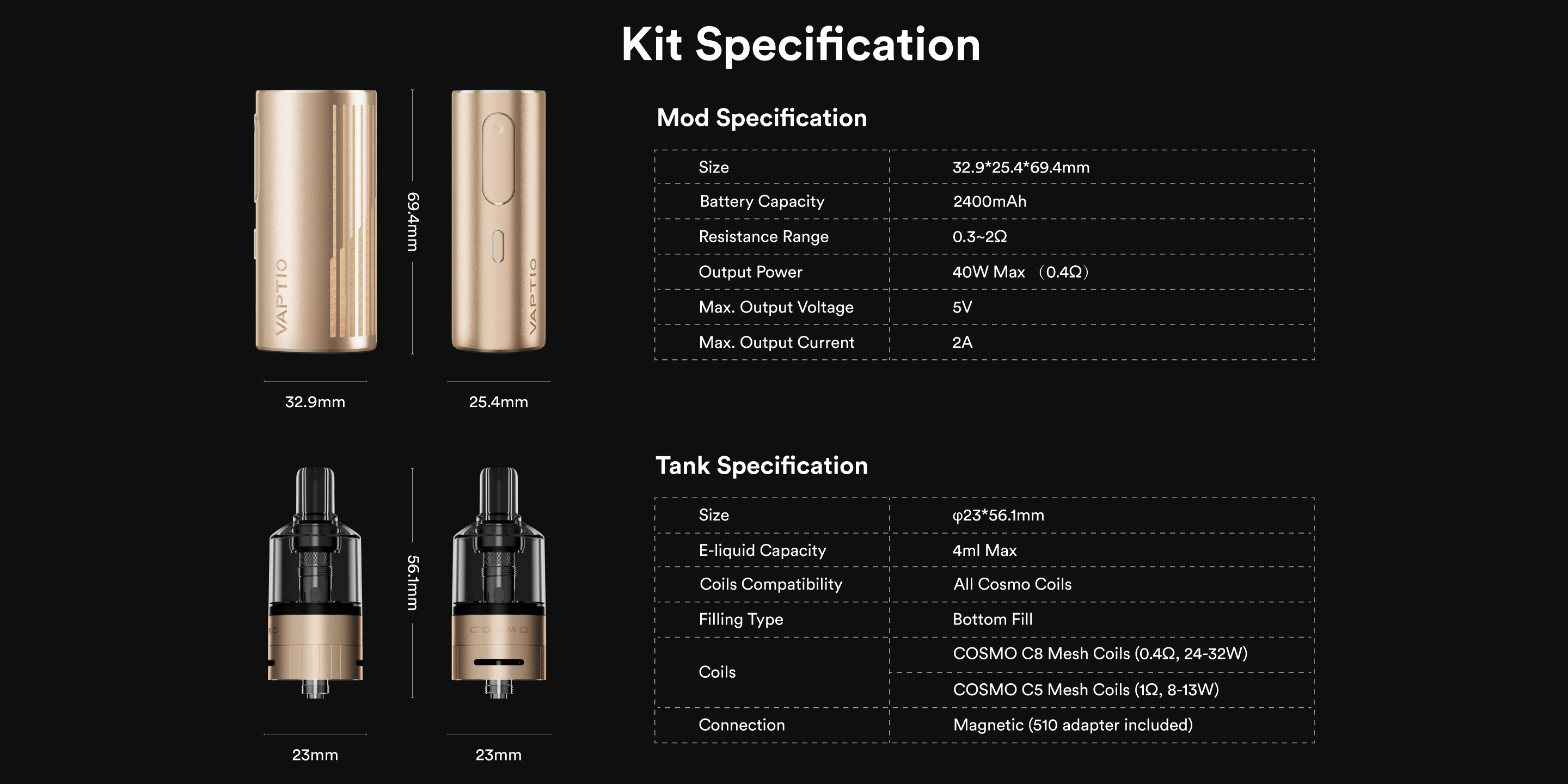 VAPTIO Cosmo Prime 主流 40w大/小煙主機