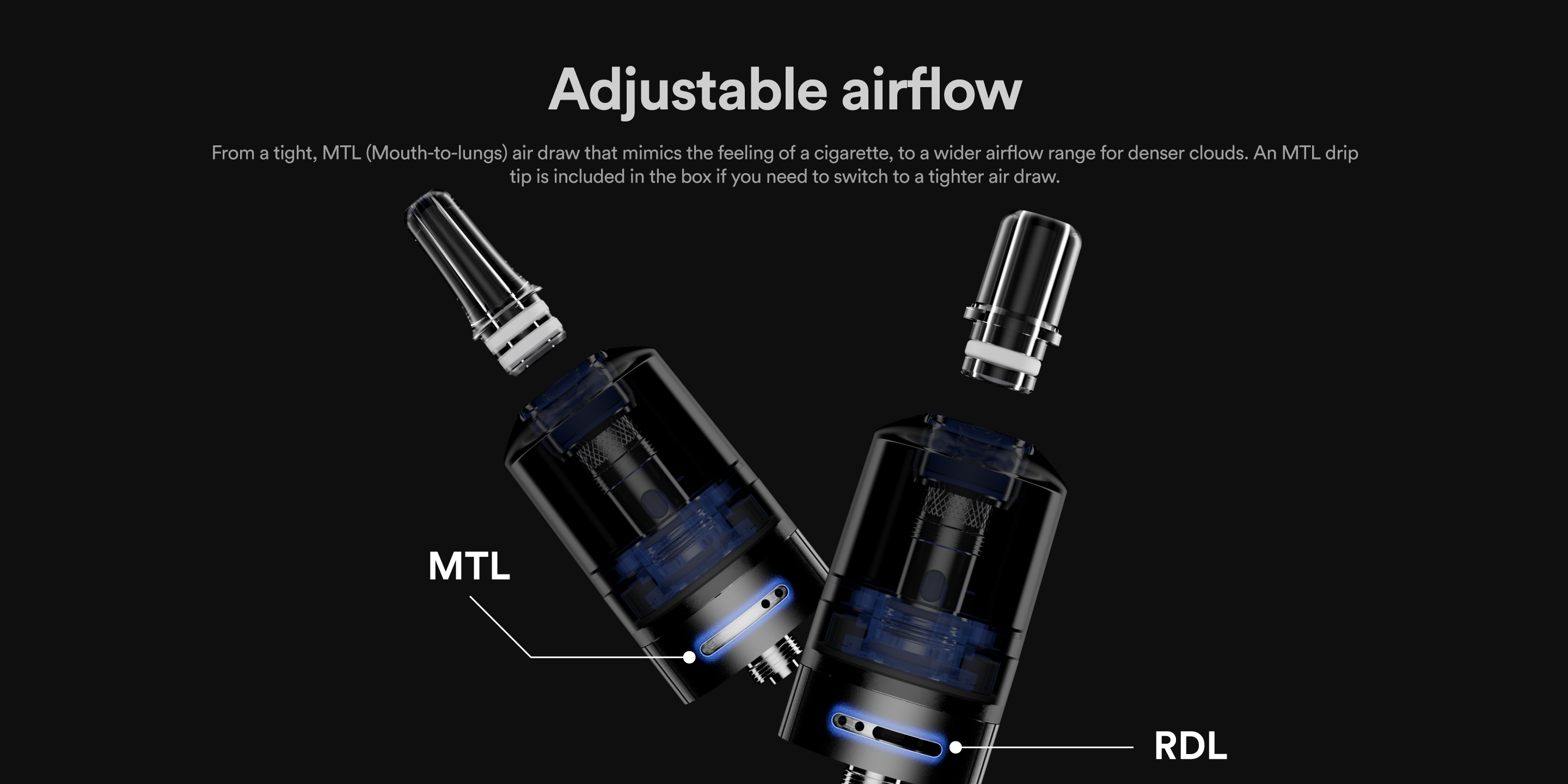 精確的氣流控制功能允許用戶根據個人喜好調整吸阻,無論是追求緊密的口吸體驗(MTL)還是較為鬆散的限制直肺吸(RDL),都能滿足需求。