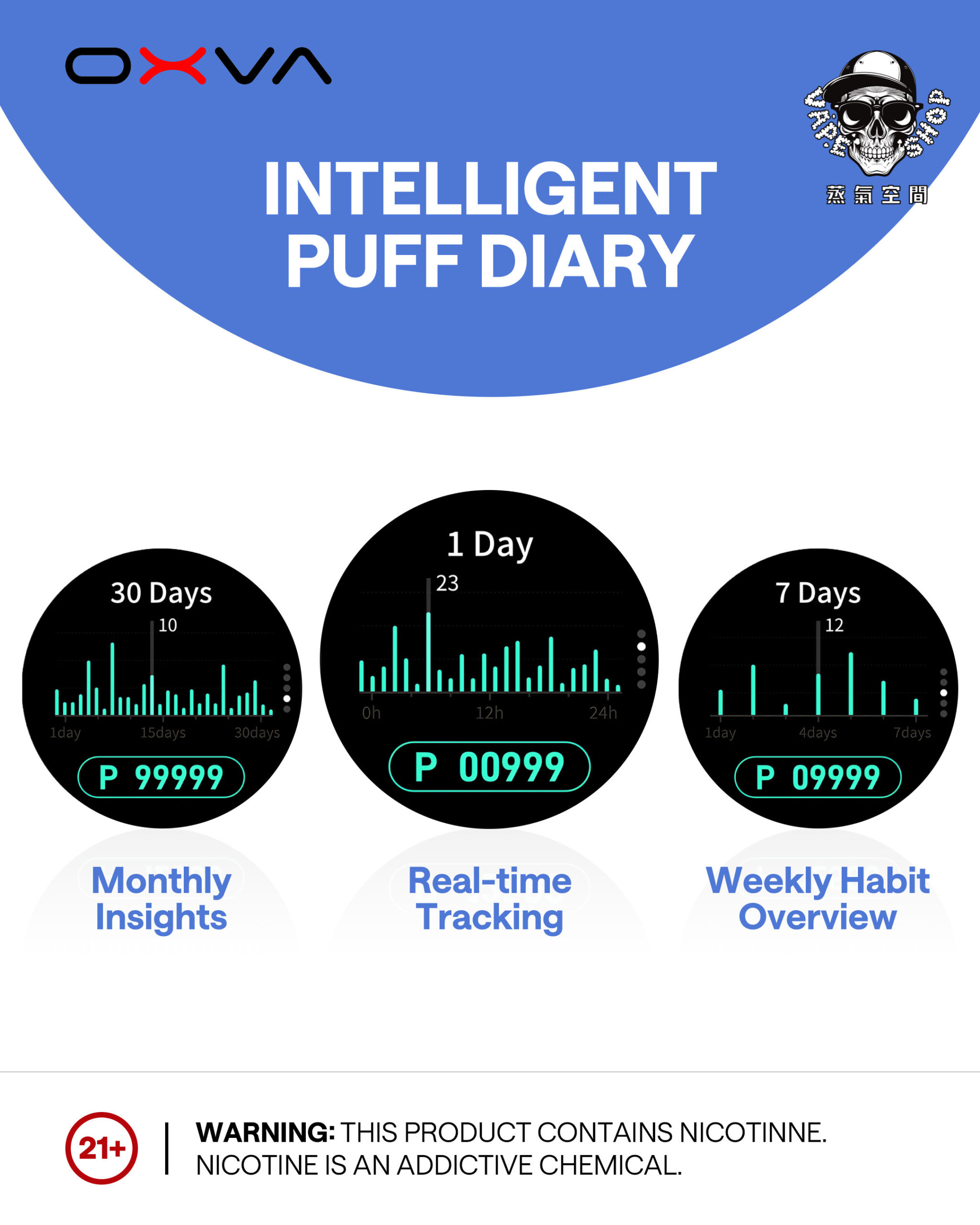 內建 Puff 統計功能,可記錄每天、每週、30 天使用數據,顯示成圖表,幫助控量或戒菸。